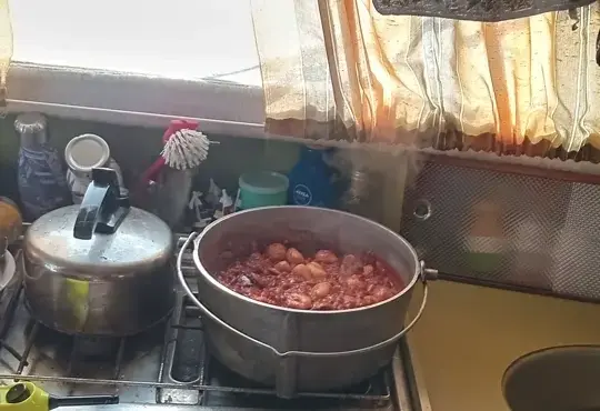 Camp ovens are designed for cooking on a fire, but they can also be used on gas burners. You can use a camp oven to cook everything from stews and curries to roasts, bread, cakes and puddings. I’ve included a couple of recipes that I put together on our most recent trip from the ingredients I had available (p27). Both were cooked in my smaller camp oven on a gas cooker.