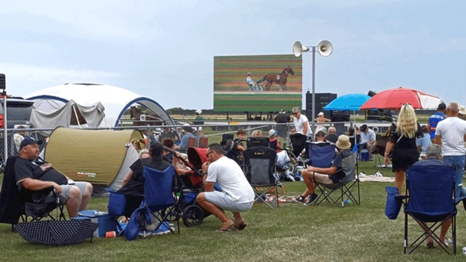 The Motukārara Races held their annual New Year event on 29 December. We positioned our chairs in a semi-circle to watch the cars arrive. Most went through the gate on the boundary of the race track. The domain soon filled with parked cars. A few just stayed around their vehicles or the trees and picnicked while making their bets and listening to the race over the loud speaker.