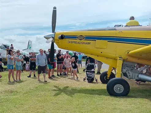 We drove out to the Whanganui Aeroclub on Sunday morning to see the planes on display. My three-year-old granddaughter had lots of fun climbing into the cockpit of a top-dressing plane and a couple of others that were open to view. There were also planes taking off and landing on the nearby runway, including a vampire jet and a DC3. After the visit to the Aeroclub we dropped in at the SteamRail Whanganui workshop for a jigger ride.